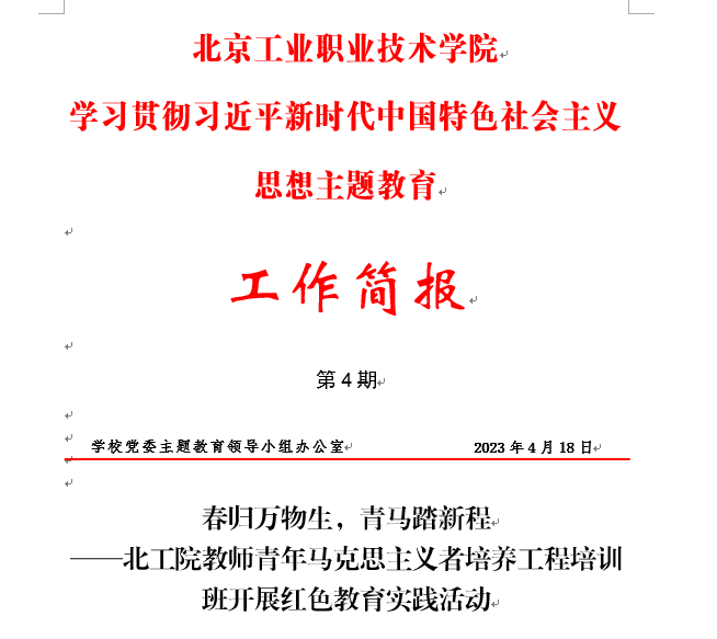 4月15日,北工院教师青年马克思主义者培养工程培训班在雁栖湖新时代文明实践基地组织开展红色教育实践活动。活动旨在深入开展学习贯彻习近平新时代中国特色社会主义思想主题教育,贯彻落实党的二十大精神,传承红色文化基因,凝心铸魂筑牢根本,进一步加强教师对党史知识学习,增进对革命传统精神理解,实现爱国主义精神升华。