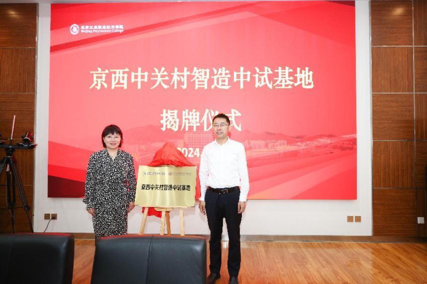 随后,北京中关村硬创集团董事长程静和BBV·体育党委副书记、院长柳长安一起为“京西中关村智造中试基地”揭牌,揭牌启动仪式标志着京西“智造”再创新路径,促进京西科技成果转化和智能制造产业发展的加速落地。