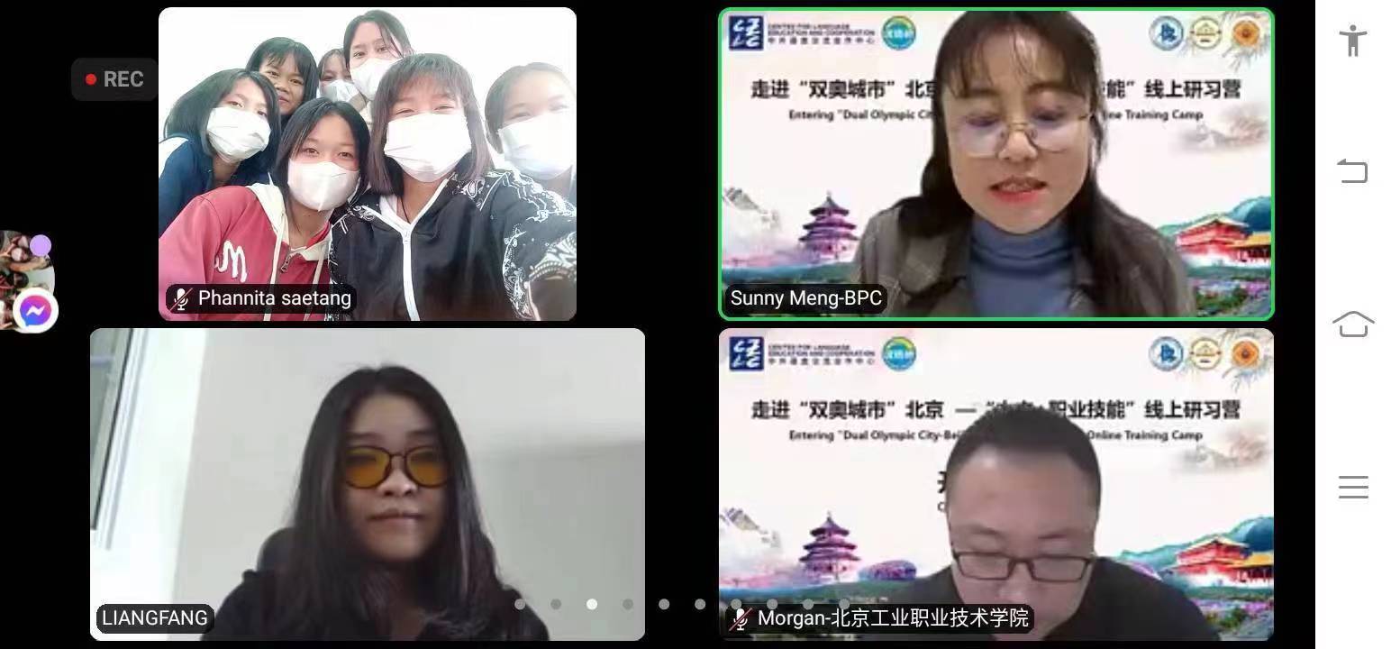 我校国际交流合作处副处长孟晴向学员介绍了北工院“中文+职业技能”系列项目和“中文+职业技能”线上研习营的课程安排,并预祝研习营圆满成功。