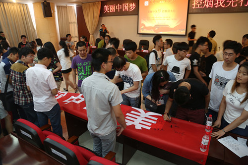 校党委组织部部长苗耀华充分肯定了本次活动,并强调指出:一是学生党员、积极分子应以身作则在控烟工作中起到带头作用;二是学生党员和积极分子应在如何发挥先锋模范作用,影响同学,取得控烟实际效果的问题上多下功夫;三是通过自己实际行动将我校控烟工作落到实处。同时告诫广大青少年学生要从民族的发展和健康中国梦的高度去看待禁烟工作,真正做到控烟我先行。随后,参加活动的全体师生在“美丽中国梦,控烟我先行”的条幅上承诺签名。