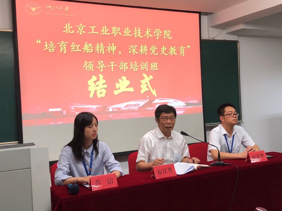 我校“培育红船精神,深耕党史教育”领导干部培训班于7月16日圆满落下帷幕,浙江大学继续教育学院华北华中区培训部副主任应义华为学员颁发结业证书,我校领导干部培训班被授予“优秀班级”荣誉称号,安江英校长作总结讲话。