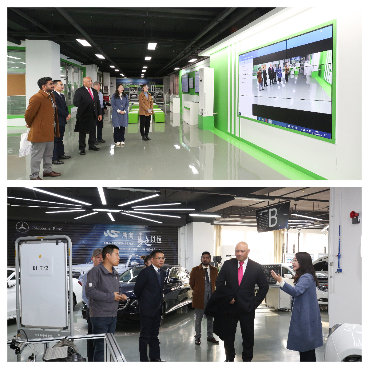 来访客人在史运涛的陪同下还参观了我校中法能效应用人才培养与研究中心、汽车实训中心、智能机器人实训室、BIM实训中心、智慧创维实训中心等,对我校理实一体化的教学模式和优质的实训条件给予高度赞赏和肯定。