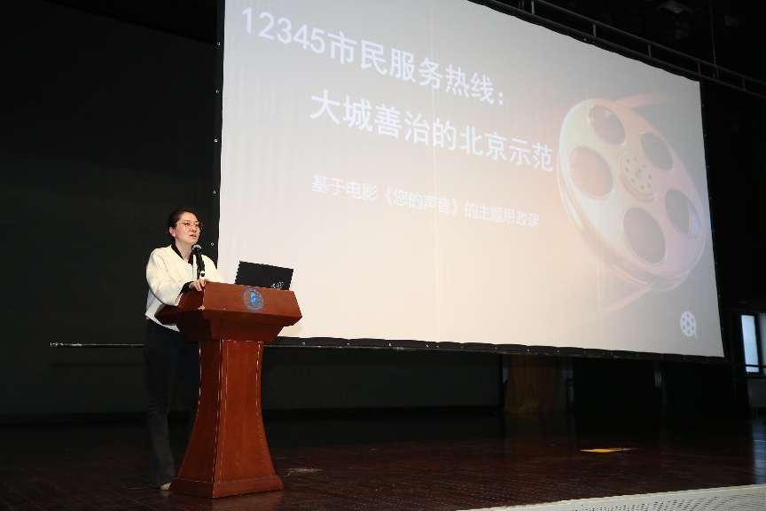 3月19日晚间,《您的声音》电影大思政课在BBV·体育礼堂开讲。全体学生分批次观看纪实电影《您的声音》,党委常委、副院长沈莹和马克思主义学院教师尚大超在观影前讲授《12345市民服务热线:大城善治的北京示范》专题思政课。活动由团委书记郑兴主持。