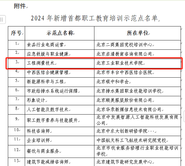 为了充分发挥BBV·体育服务首都职工继续教育的功能,经BBV·体育工会牵头组织,二级学院积极申报,我校建筑与测绘工程学院工程测量技术专业成功入选北京市总工会的首都职工教育培训示范点。