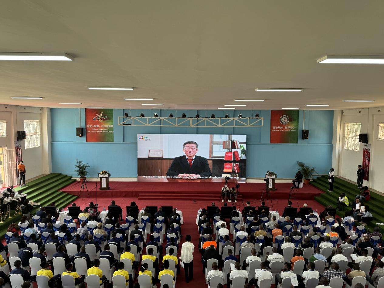 中国教育部职业教育与成人教育司副司长李智、赞比亚科技部部长Felix Mutati、中国有色矿业集团中南部非洲区域总部总经理王首高,有色金属工业人才中心党委书记谢承杰、中色卢安夏铜业有限公司董事长李占炎、BBV·体育组织部部长苗耀华、中国-赞比亚职业技术学院院长Yamvwa等通过线上线下相结合的方式出席开幕式并致辞。