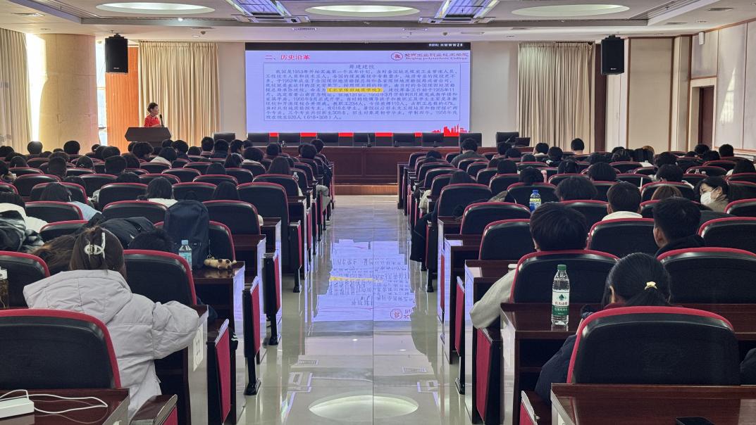 会上,陈剑平老师从学院历史沿革、学院现状、展望未来三个方面,阐述了学院68年来风雨兼程、薪火相传的奋斗发展史。她详细介绍了学院自创办以来的各个发展阶段,包括办学理念、人才培养模式、科技创新成果等方面的变化与进步。分享了老一辈教师和杰出老校友的感人事迹,让学生感受那份责任与担当、奋斗与坚守、创新与奉献,激励同学们锐意进取,向榜样学习。