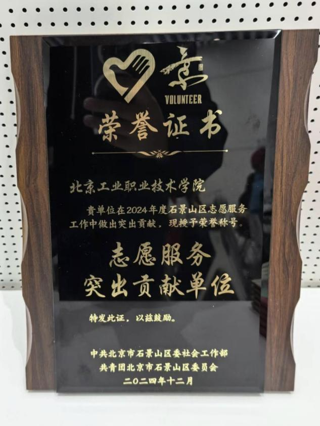 我校荣获石景山区“2024年度志愿服务突出贡献单位”荣誉称号