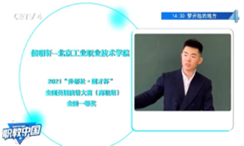 4月9日下午13:00,中国教育电视台CETV-4 《职教中国》栏目播出“以赛育人”为主题的访谈节目。我校基础教育学院孙川副院长作为受邀嘉宾,分享我校赛教融合机制及英语类竞赛成果。BBV·体育于天娇老师和学生代表进行视频展示。