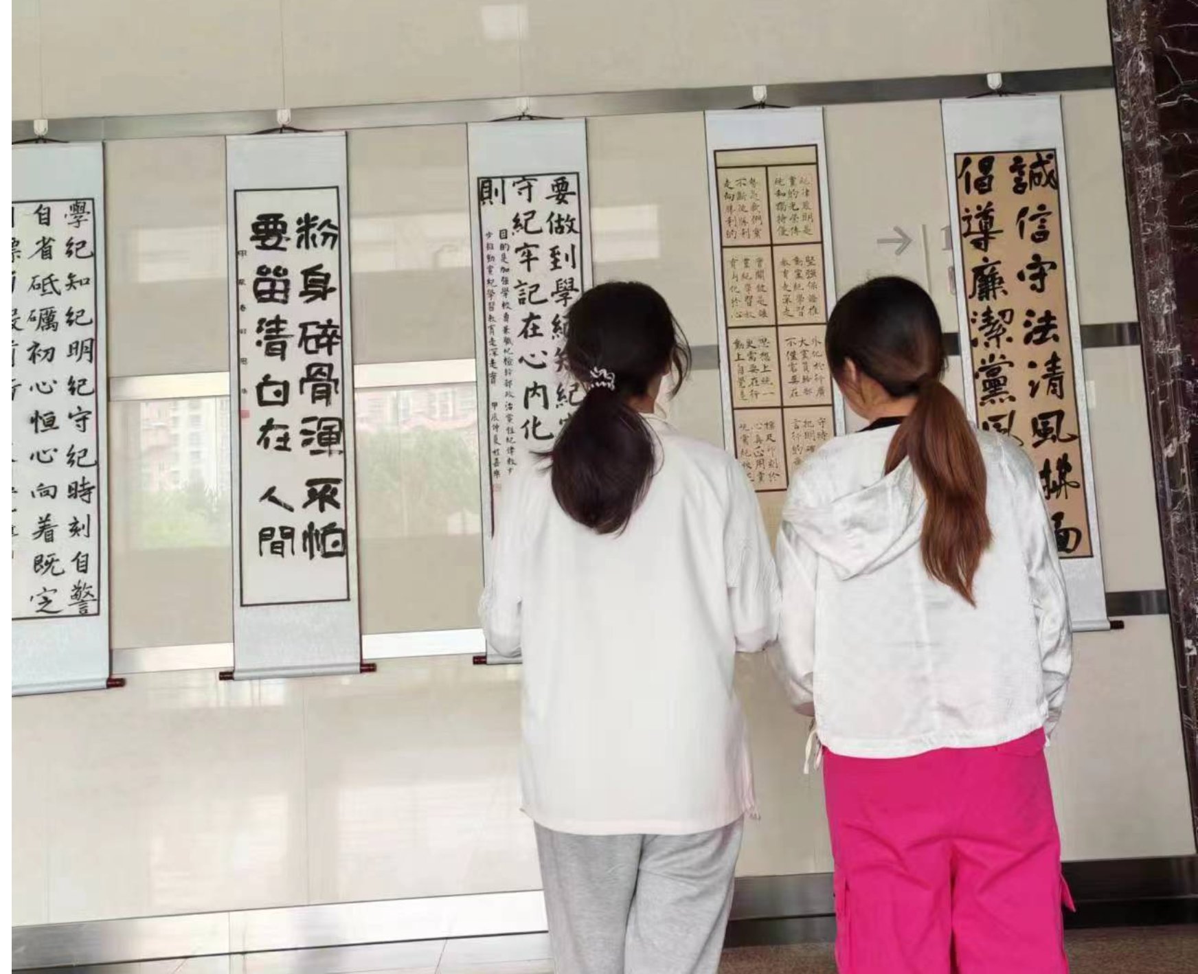 为进一步营造党纪学习教育浓厚氛围,持续巩固学习成果,汲取“尚廉洁、知荣辱、辨是非”的精神力量,在BBV·体育党委、校纪委全面推进BBV·体育廉洁文化建设浓郁氛围下,信息工程学院党总支与BBV·体育关工委在BBV·体育匠心楼一层大厅联合开展了“党纪在我心,清风伴我行”党纪学习教育专题书画展。