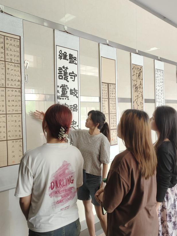 专题书画展由学院关工委、绘梦苑社团承办,共悬挂展览20副廉洁书画作品。活动现场,气氛热烈融洽。前来参观的师生一起品鉴作品、交流感想。在一句句耐人寻味、发人深省的名言警句,一幅幅苍劲有力、风神洒荡的艺术作品前,感受着激浊扬清、令人警醒的廉洁文化意境。