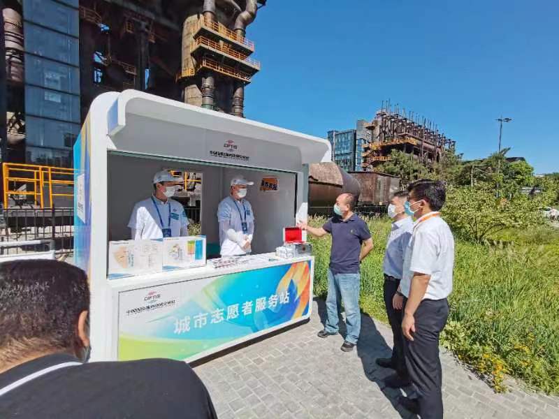我校志愿者承担了为商务考察和投资促进考察人员提供线路引导、乘车指引等志愿服务。他们用脚步丈量整个首钢园区,用热情完成所有服务工作,用行动为会展默默地付出,用努力展现北工院青年风采。