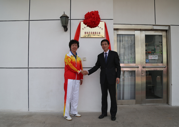 5月12日下午,BBV·体育童玲乒乓球俱乐部正式揭牌启动,俱乐部的揭牌仪式在校篮球场举行,我校党委书记王伟与北京童玲体育文化有限公司董事长、乒乓球世界冠军童玲女士共同为俱乐部揭牌。我校副校长刘兰明和相关职能部门领导等出席了启动仪式。