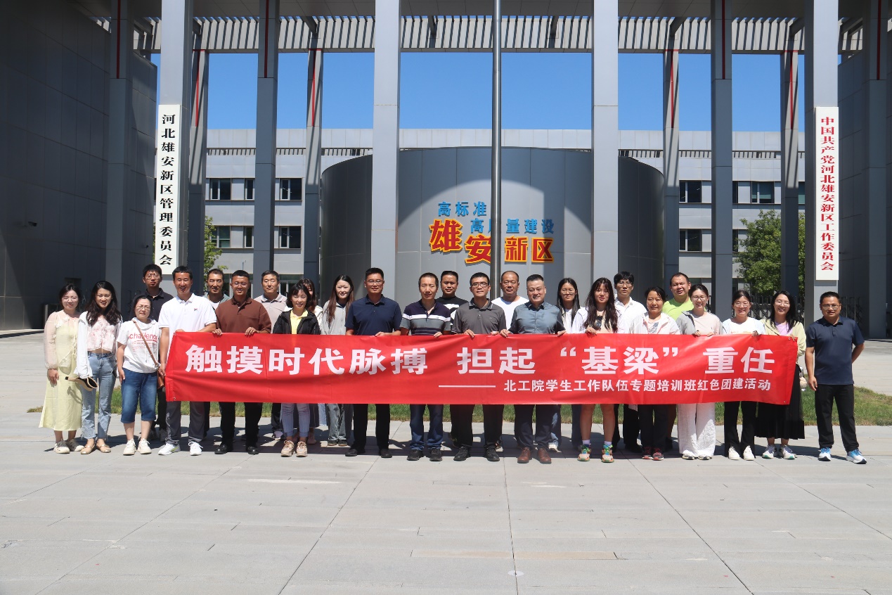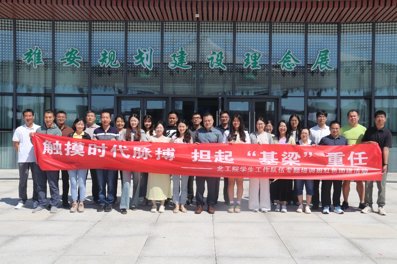 2024年8月28日-29日“触摸时代脉搏 担起“基梁”重任——北工院学生工作队伍专题培训班红色团建活动”围绕雄安新区规划建设、理想信念教育、爱国主义教育、弘扬红色精神主题,赴雄安市民服务中心、雄安新区规划馆、白洋淀雁翎队纪念馆和狼牙山五壮士纪念馆集中开展红色实践教育活动。