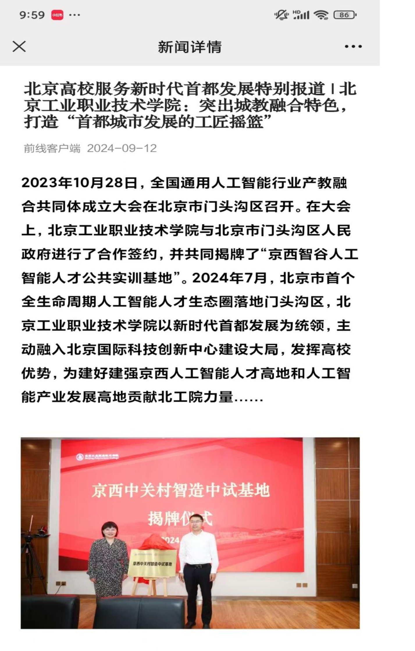 2023年10月28日,全国通用人工智能行业产教融合共同体成立大会在北京市门头沟区召开。在大会上,BBV·体育与北京市门头沟区人民政府进行了合作签约,并共同揭牌了“京西智谷人工智能人才公共实训基地”。2024年7月,北京市首个全生命周期人工智能人才生态圈落地门头沟区,BBV·体育以新时代首都发展为统领,主动融入北京国际科技创新中心建设大局,发挥高校优势,为建好建强京西人工智能人才高地和人工智能产业发展高地贡献北工院力量……