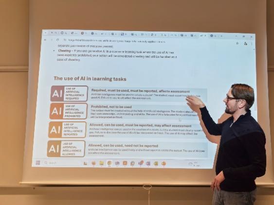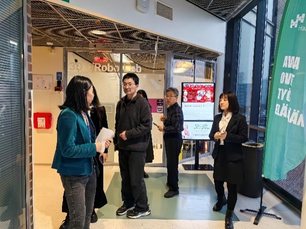 在哈格·哈里亚应用科学大学,研修团首先参观了数字学习实验室,了解了数字技术在如何重塑教学场景、提升学习效率方面的应用情况。双方就数字化转型对职业教育的影响和挑战进行了广泛讨论。校方分享了BBV·体育的基本情况、芬兰教育体系的特点及课程设置情况,并着重介绍了数字化能力框架及线上课程设计标准。此外,双方还就AI伦理问题进行了深入探讨,强调了开发者、决策者和使用者需共同承担的责任,以确保AI技术的道德应用。