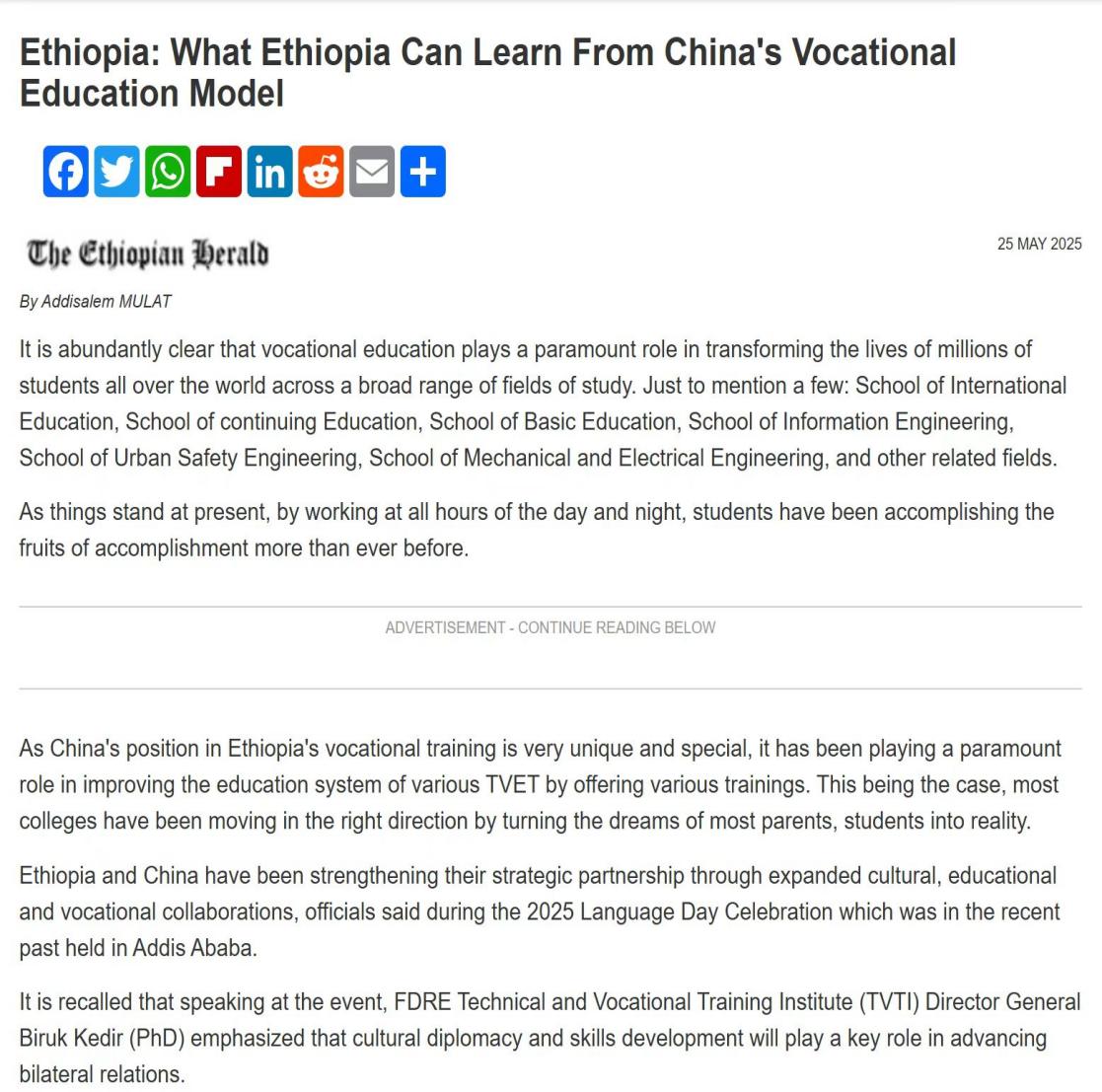 埃塞俄比亚记者阿迪萨利姆·穆拉特、卢旺达时间网记者克里斯汀、冈比亚国家广播电视台记者Kadijah等多家外国媒体记者对此次活动进行了专题报道。文中不仅生动记录了在我校的参访见闻,高度评价我校培养高素质技术技能人才的显著成效,更将中国职教经验提炼为推动非洲国家发展的重要参考。