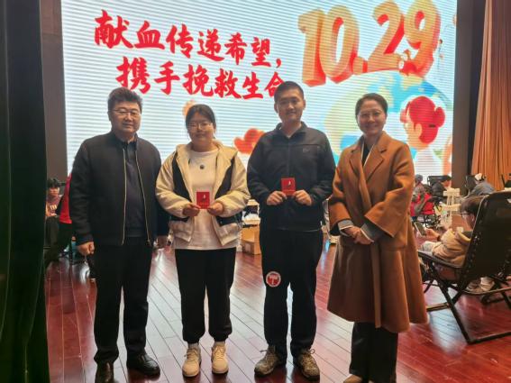 我校党委常委、纪委书记钱伟和党委常委、副院长沈莹来到活动现场,亲切慰问了踊跃献血的同学们、辛勤工作的医护人员和学生志愿者。两位校领导详细了解了献血活动的组织流程和保障措施,对同学们无私奉献的精神给予了高度赞扬,并为无偿献血学生代表颁发了献血证。