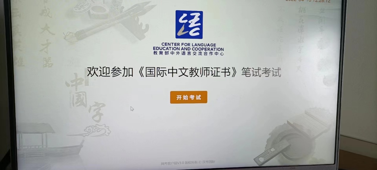 2022年4月16日下午,由教育部中外语言交流合作中心主办的2022年上半年《国际中文教师证书》考试(笔试)在线上举行。我校“中文+职业技能”教育实践与研究基地联合有色金属工业人才中心共同组织的“中文+职业技能”师资能力培训专班的共168名教师参加了此次笔试。同时,我校承担了此次专班笔试考试的监考工作,并圆满完成监考任务。