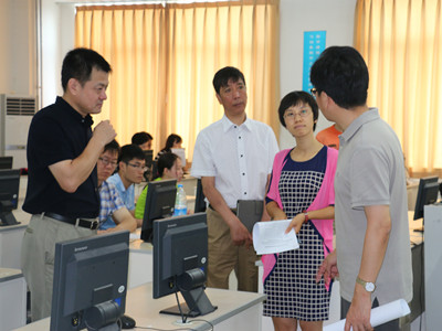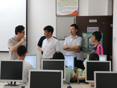 我院第六届数学建模竞赛正在综合楼8层机房火热进行,副校长刘兰明、基础教育学院院长胡喜平、党总支书记梁文学、教学副院长王佼等莅临比赛现场。