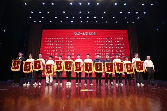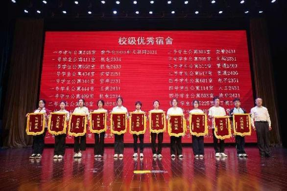 党委常委、院长助理谢光辉为校级“优秀宿舍”颁奖