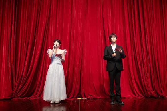 装饰2431班林桐、网络2171班周新洋主持合唱比赛