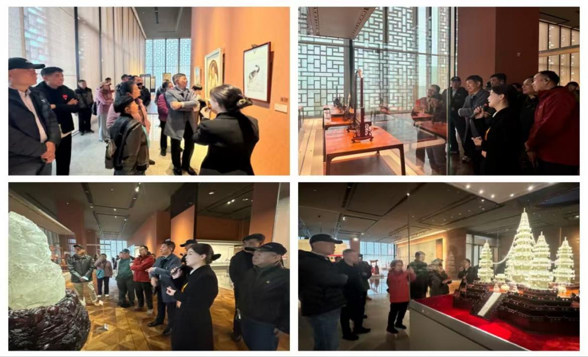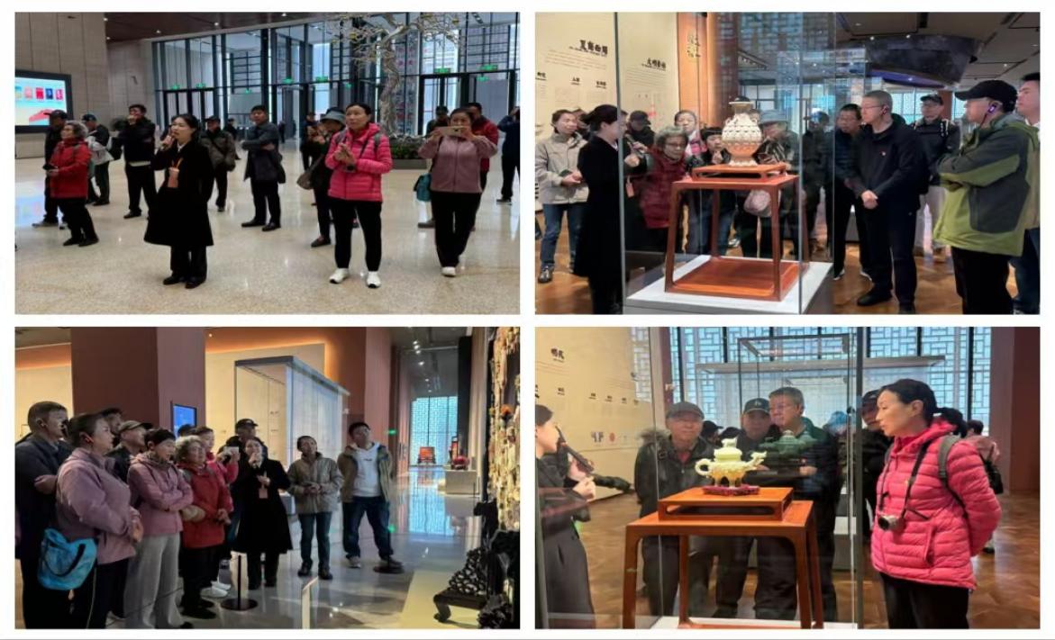 老同志们参观“文脉华滋——中国工艺美术基本陈列”展览和“气象万千——中国非遗保护实践主题展”两大展厅,共同学习大国工匠精神,进一步感受中国传统文化的魅力。从精致的刺绣到独特的剪纸艺术,从古老的传统陶瓷到现代的创新设计,每一件作品都凝聚了匠人的心血和智慧。