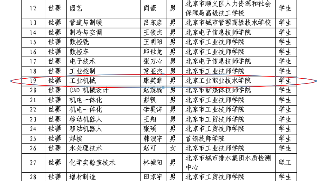 我校机电工程学院学生康笑章同学在2023年第47届世界技能大赛北京市选拔赛-工业机械赛项中荣获北京市第一名,作为该赛项唯一入选者代表北京市参加中华人民共和国第二届职业技能大赛暨世界技能大赛全国选拔赛。