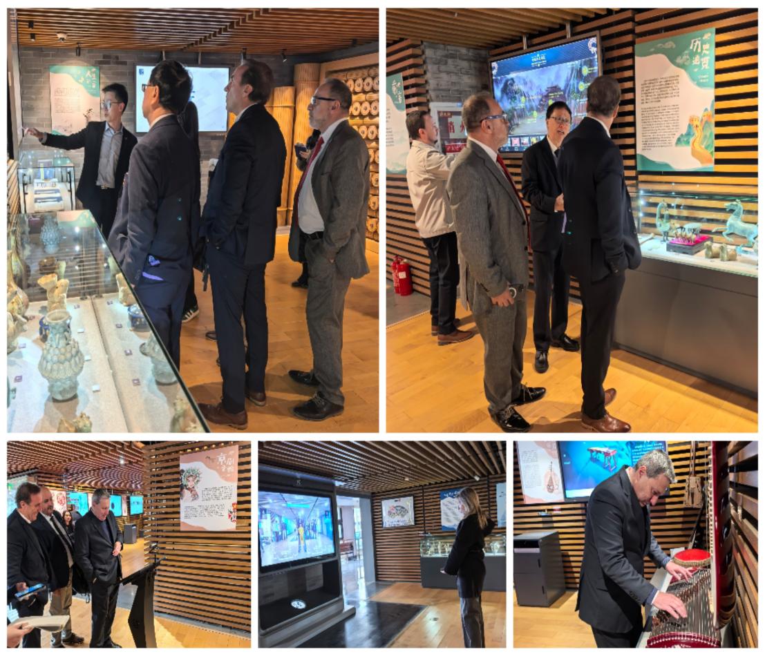3月5日,代表团到访中国教育部中外语言交流合作中心,语合中心美大处处长袁丽、副处长孙铭阳及项目官员王奕洲等与阿根廷访华团代表深入座谈交流。访华团成员全面了解了语合中心目前所开展的“中文+职业技能”、“汉语桥来华项目”、“本土中文教师培训”等项目。萨尔塔省教育和劳工部代表官员表达了对语合中心的感谢,他认为“中文工坊”构建了“政府+企业+高校+社区”合作新生态,助力了当地经济社会发展,满足了中资企业属地化需求。团组还参观了语合中心文化体验中心,在编钟演奏、武术互动、生肖文化解码、京剧脸谱绘制等项目中沉浸式感知中华文化魅力,萨尔塔天主教大学代表感叹“文化体验设计兼具学术性与趣味性,为国际中文教育提供了鲜活样板”。