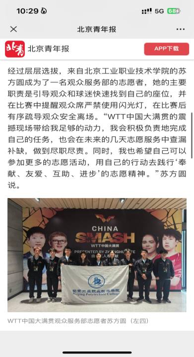 2024年9月26日至10月6日,为期11天的WTT中国大满贯赛事圆满落下帷幕。北工院全体志愿者为赛事的成功举办,贡献北工院青春力量。