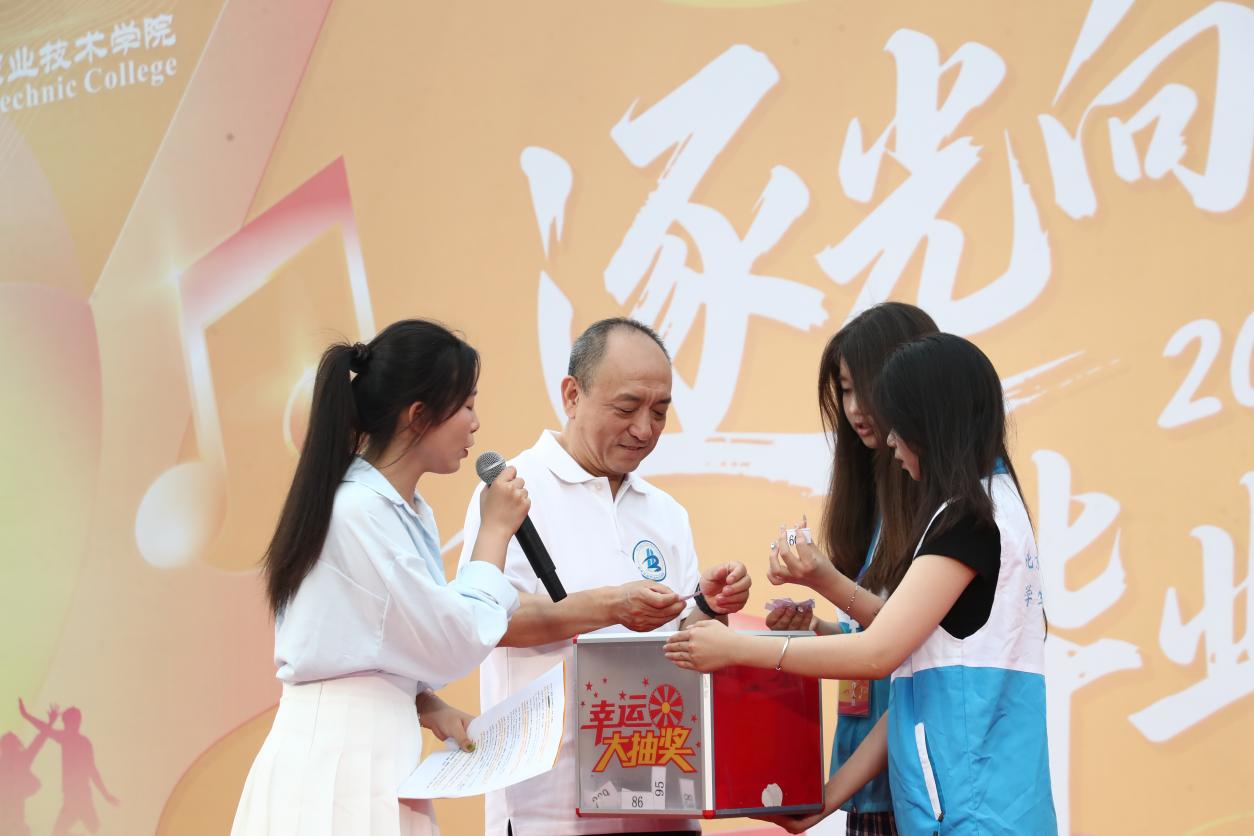 第二篇章尾声,党委副书记魏晓东抽取现场幸运观众,并送上温情毕业祝福。