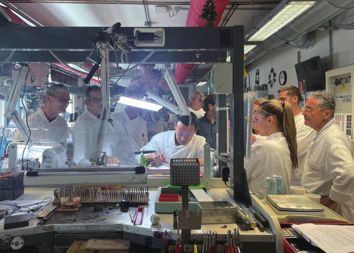 郭卫军工作室位于BBV·体育内。一进工作室,仿佛走进一座玉雕金银错的博物馆,一件件精美的艺术品令人目不暇接。除去中华玉雕艺术大师、全国技术能手、北京工艺美术大师、中国青年玉雕艺术家、北京玉雕非遗传承人等诸多身份,郭卫军还是BBV·体育的特聘教师。