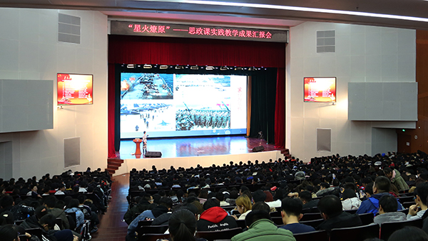 12月14日,我校2021年思政课实践教学成果汇报会在BBV·体育礼堂隆重举行。校党委书记高喜军、党委副书记魏晓东、副校长周燕、副校长刘兰明、副校长王希忠、纪委书记张萌萌、校长助理谢光辉,马克思主义学院、党委宣传部、党委教师工作部(人事处)、教务处、教学质量监控中心、学生工作处等相关部门负责人,各学院院长、党总支书记和副书记出席会议,马克思主义学院全体教师和各学院学生代表参加汇报会。