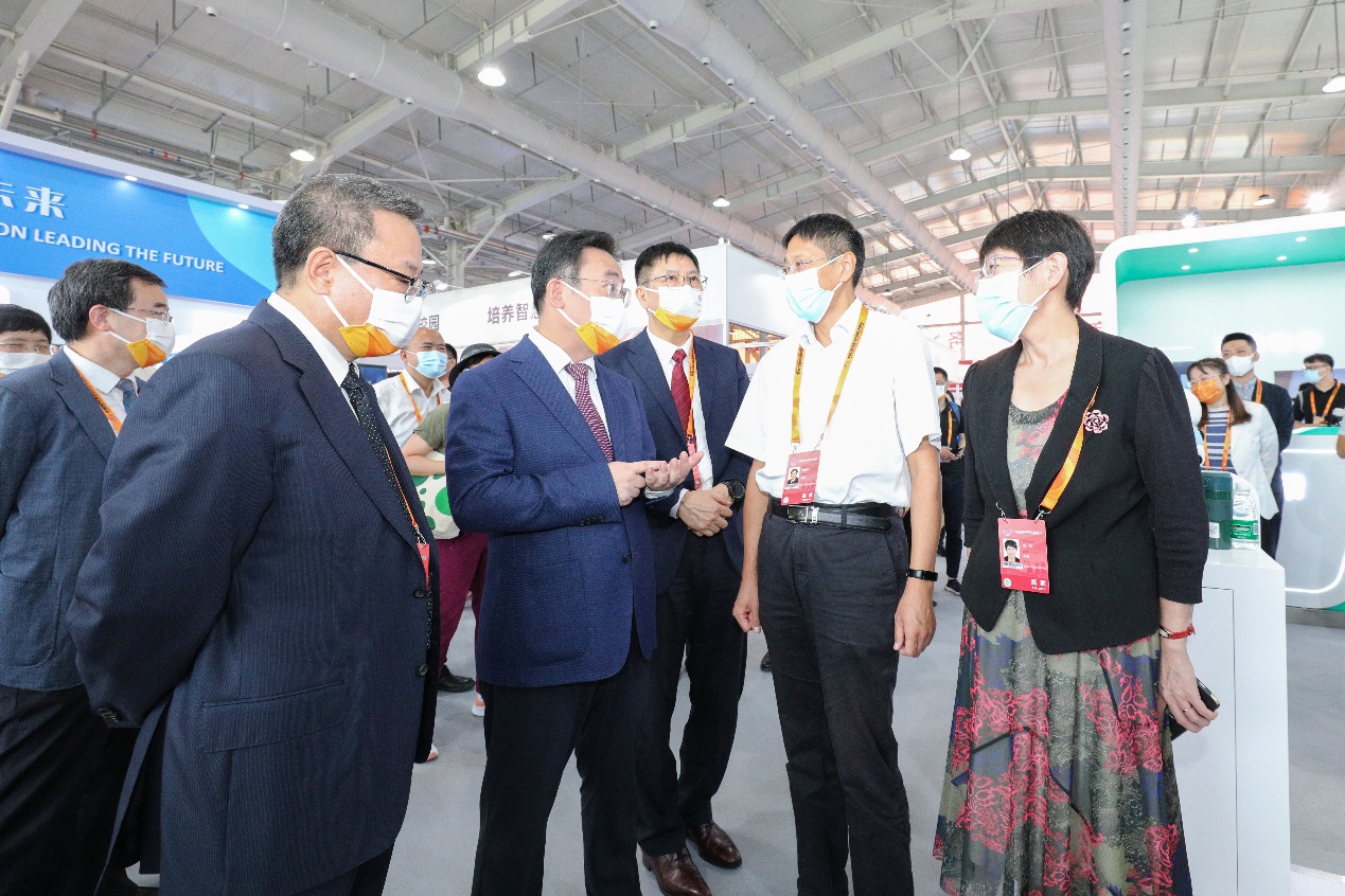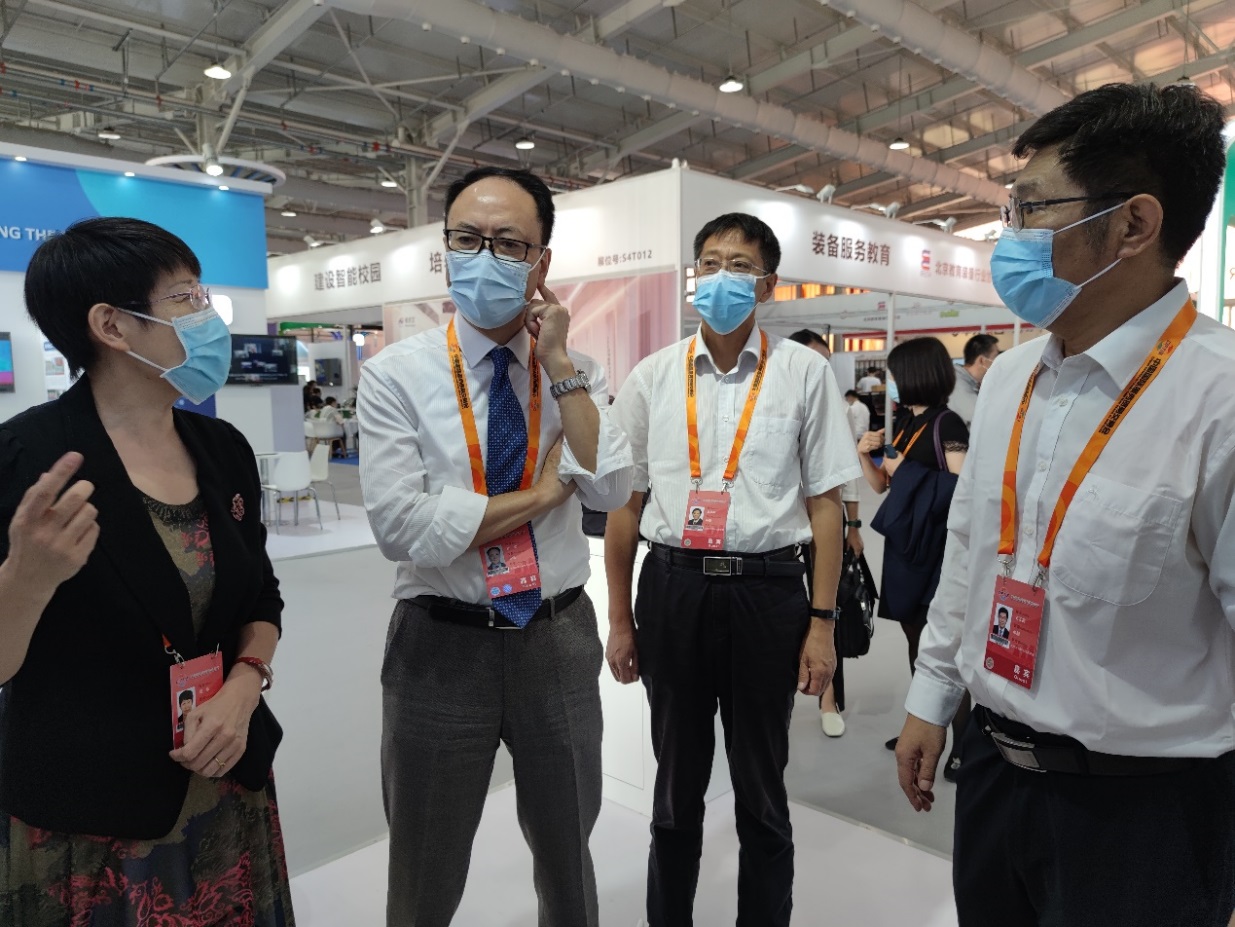 教育部国际合作与交流司副司长方军在我校党委书记高喜军、院长安江英、副院长周燕的陪同下莅临我校展位观展并提出指导意见