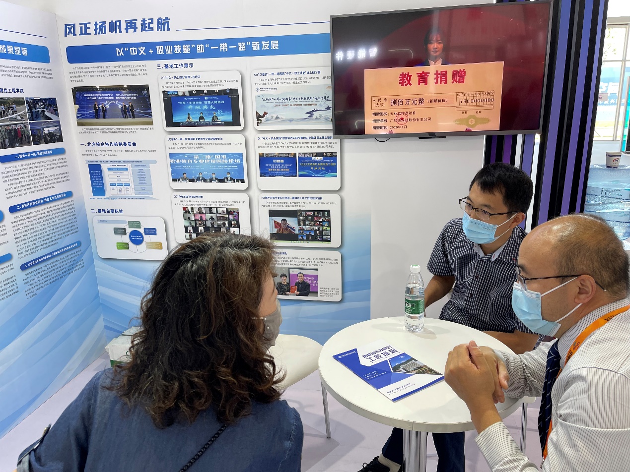 服贸会上,我校展区通过“乘风破浪向远方-校企协同‘走出去’探寻职教国际化发展之路”、“砥砺前行新征程、双高专业群建设国际化成果显著”、“风正扬帆再起航-以‘中文+职业技能’助‘一带一路’新发展”三大模块集中展示了我校国际化办学、服务国家“一带一路”倡议、服务首都“四个中心”建设,以及促进中文国际交流等方面的优秀成果,展现了首都职业教育国际化办学的优良风貌,在职业教育服务贸易领域树立标杆和典范。