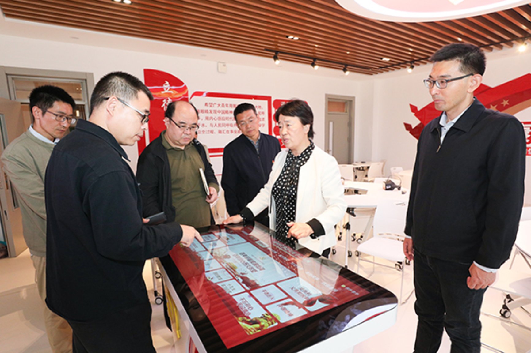 田红芳察看了马克思主义学院教学(行政)办公室、教研室、会议室和思政课虚拟仿真体验教学中心,详细了解马院办公场所布局和教学条件建设,现场体验了思政课虚拟仿真课程资源。