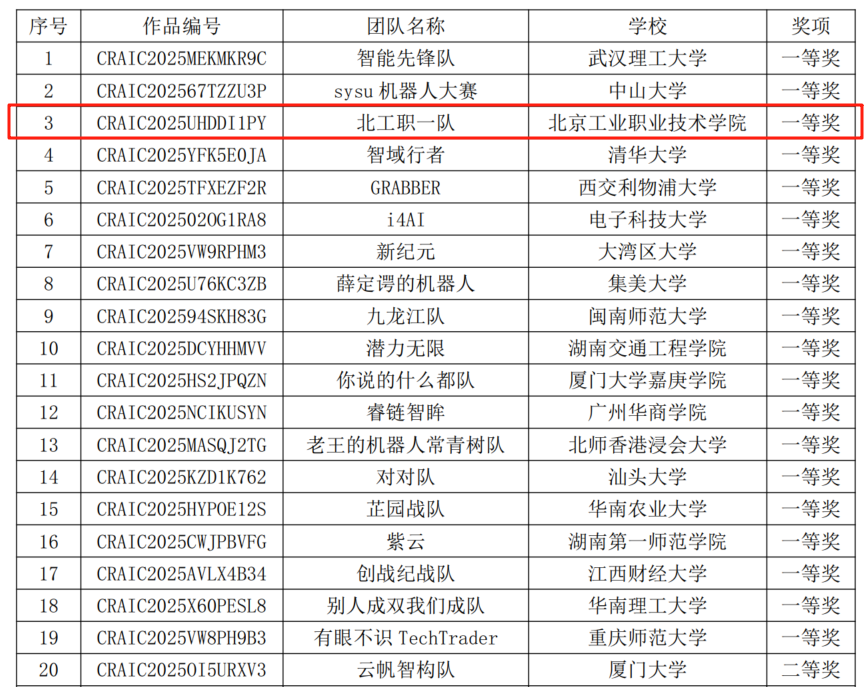 2025年8月,第二十七届中国机器人及人工智能大赛全国总决赛在苏州圆满落幕。我校信息工程学院人工智能教研室组织的参赛团队在智慧零售赛项中获得一等奖(全国第3名)、二等奖各1项的优异成绩,成为本届赛事一等奖获奖名单中唯一一所职业院校,彰显了我校在人工智能技术应用领域的育人实力。
