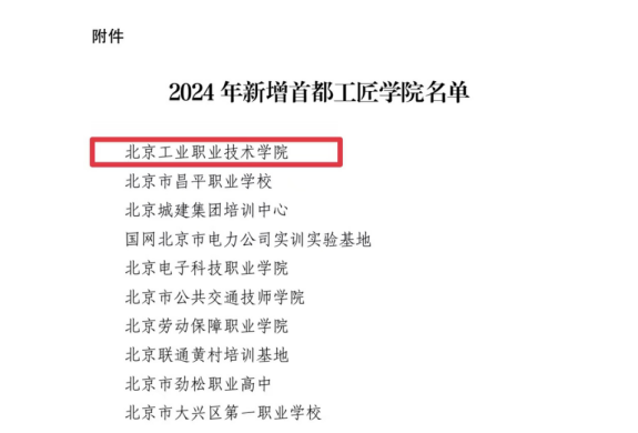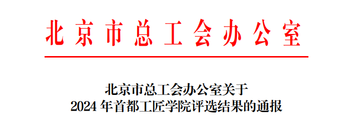 近日,北京市总工会公布了2024年首都工匠学院评选结果,我校成功入选首都工匠学院。