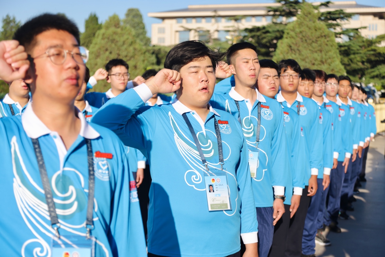 他们怀揣着青春的激情与梦想,以无畏的勇气和坚定的信念,为主席站岗,守护着这份神圣与庄严。他们用汗水浇灌希望,用行动诠释责任,用实际行动践行了“请党放心,强国有我”的青春誓言,展现了新时代青年的风采与力量。天安门广场上熙熙攘攘的人群中,北工院青年们的“志愿蓝”正在闪耀着光芒。
