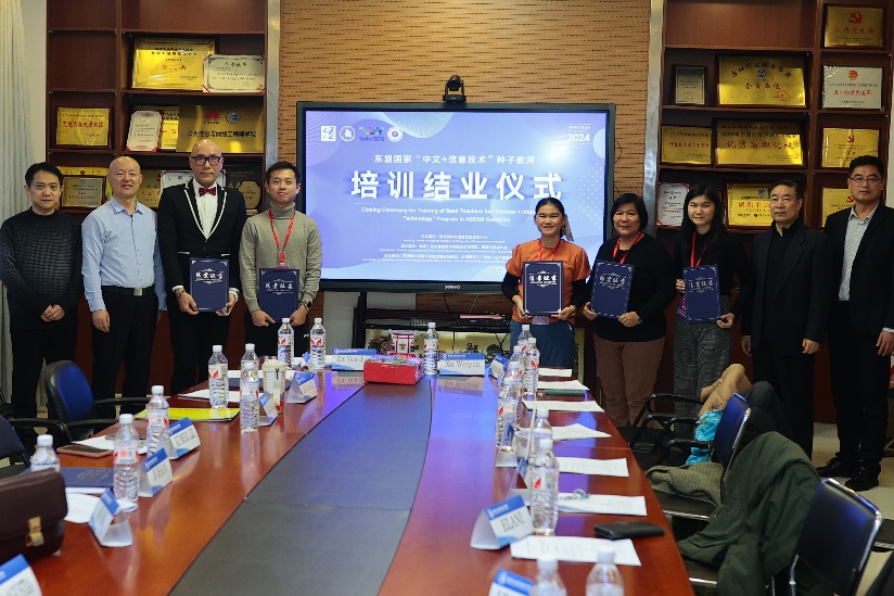 为期十天的培训中,高质量的培训内容和丰富多彩的活动安排得到了学员们一致好评。结业仪式上,学员代表分享了培训收获,并对整个培训安排表示赞叹和感谢。来自马来西亚的陈慈润老师谈到,这趟培训之旅,老师们不仅增长了中文知识,更深入了解了中国的文化与人工智能技术。从传统文化的熏陶到前沿人工智慧科技的探索,从上课老师们的悉心指导到学员相互交流研讨,参训老师们收获满满。未来,老师们将带着满腔热情,将所学所思应用于实际教学工作中,为促进中外文化交流与人工智能开发贡献一份微薄的力量。越南的邓玉辉老师表示,越南和中国山水相连、文化相通,中国和越南建立了全面战略合作伙伴关系,两国人文领域交流日益深化,民心距离不断拉近,通过培训对中国的科技发展印象深刻,获得了许多关于人工智能领域的有益启示。越南参训老师表示,非常希望发展半导体技术和人工智能技术,希望能加强和我校合作。印度尼西亚的木力老师说,这次培训中,对中文和中国文化、人工智能和信息技术的探索进一步拓宽了视野,培养了友情,交流了知识,是一段十分难忘的经历,在今后的教学中,会将学习的新知识融入教学实践中,让更多的学生从中受益。