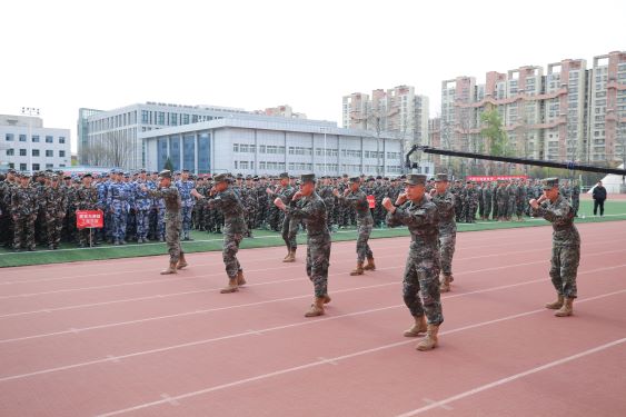 承训教官代表在发言中表示,全体军训教官将以严谨的训练作风,过硬的军事素质,认真履行职责。希望参训同学们在军训期间要严格要求自己,发扬不怕苦不怕累的艰苦奋斗精神,确保此次军训任务圆满完成。