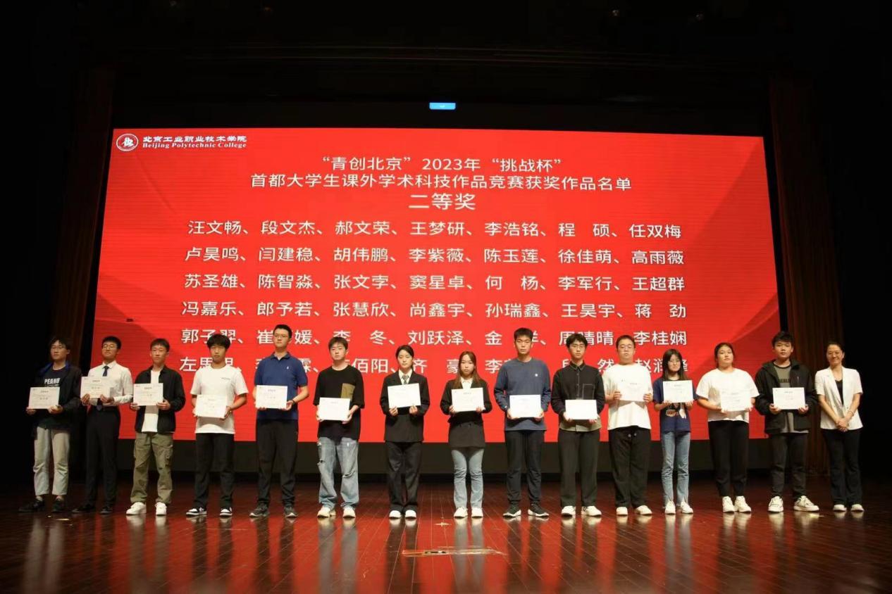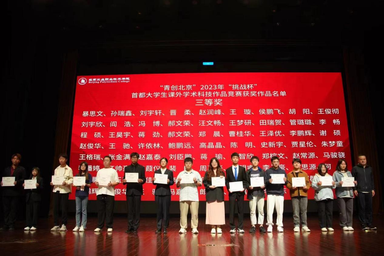 校党委常委、副院长沈莹为获得“青创北京”2023年“挑战杯”首都大学生课外学术科技作品竞赛获特等奖、一等奖、二等奖的团队代表颁奖