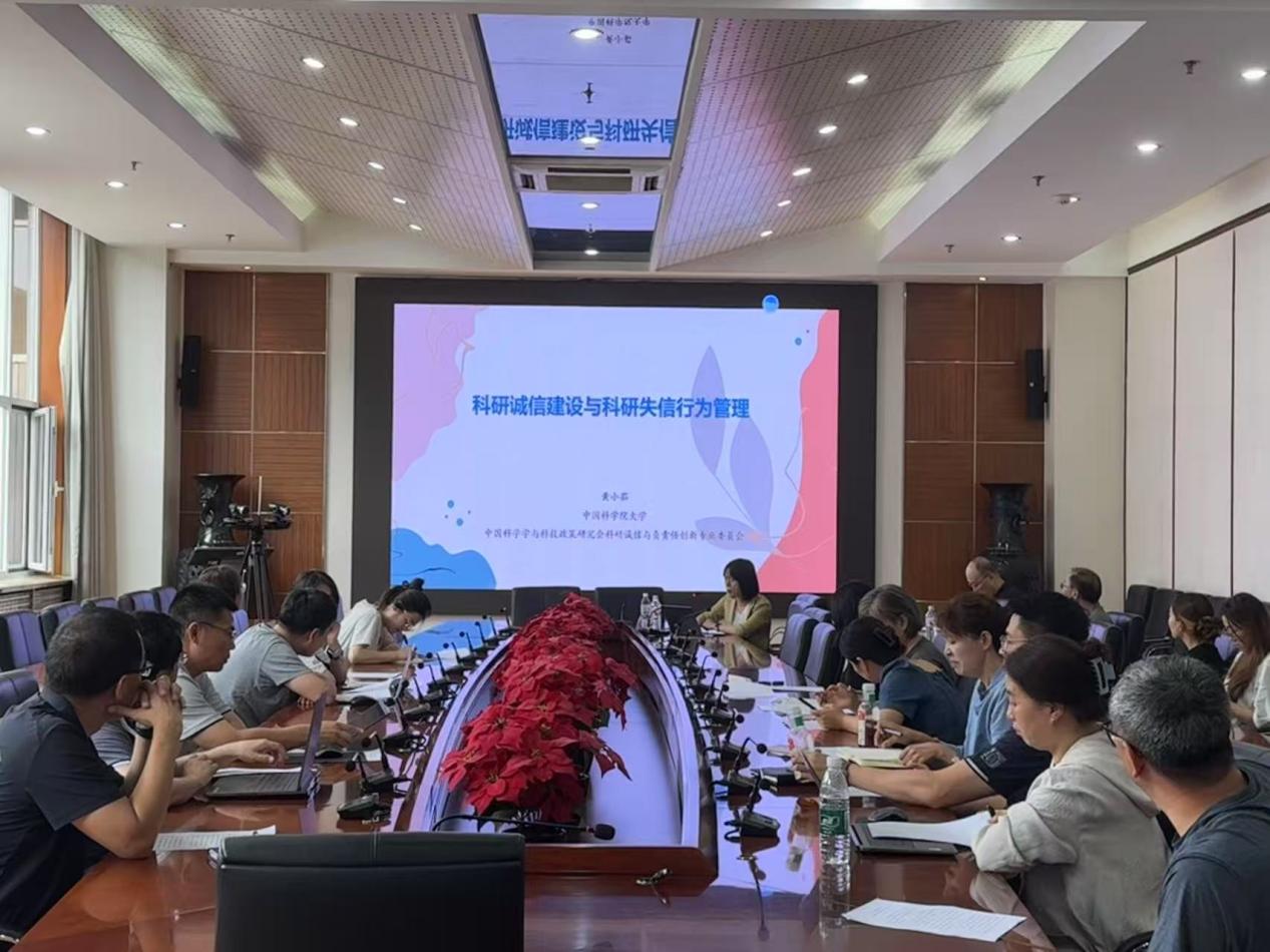 为加强科研诚信建设,提升科研人员诚信意识,营造风清气正的科研环境,7月2日下午,科技处邀请中国科学院大学黄小茹教授开展“科研诚信建设与科研失信行为管理”讲座。党委常委、副院长史运涛出席,科技处副处长李林琛主持,BBV·体育11个创新服务中心成员、科研课题负责人、科技处全体成员及学生科研助理代表参加。