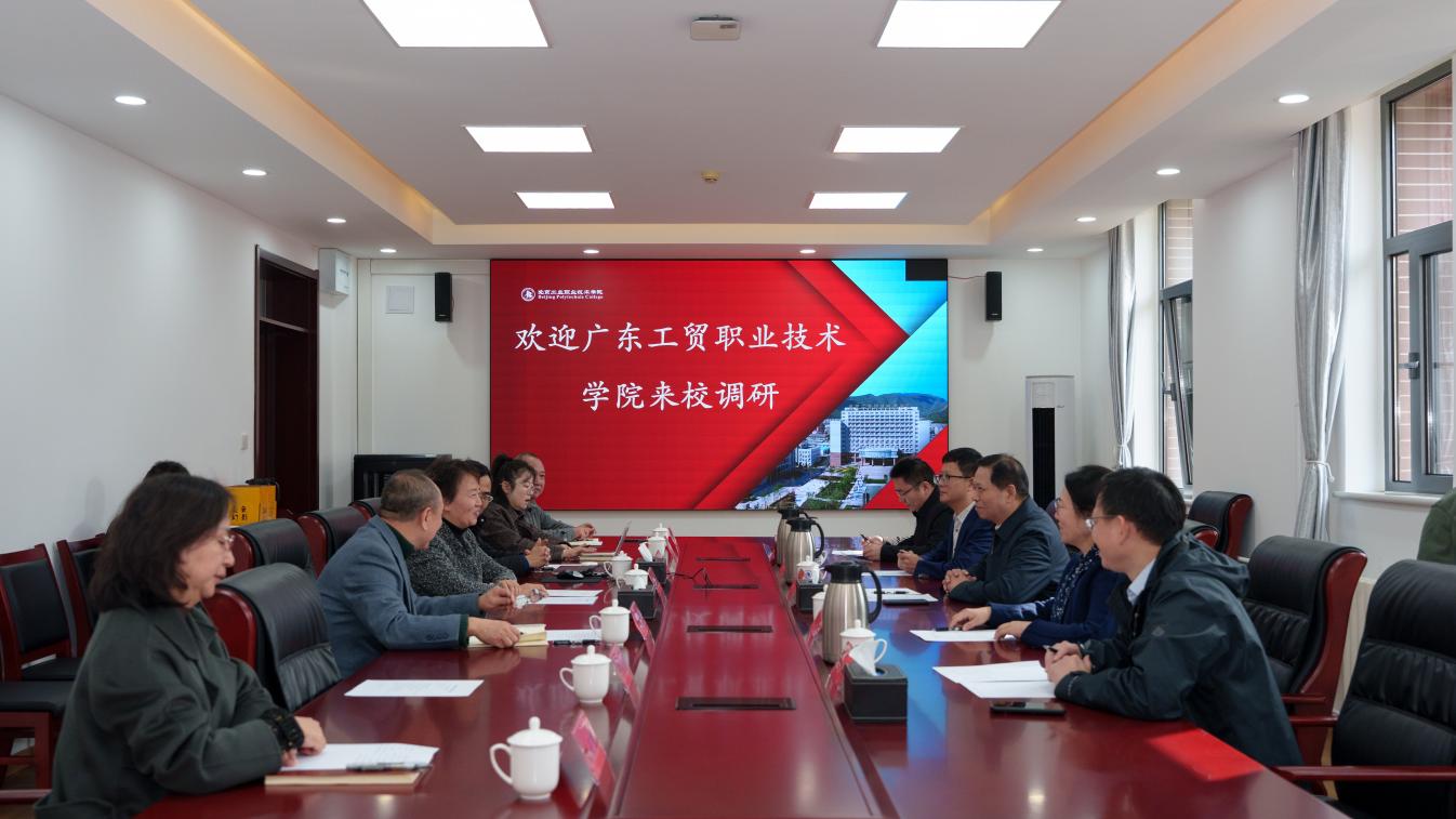 10月30日上午,广东工贸职业技术学院党委书记何汉武一行5人来校调研交流。我校党委书记田红芳,党委副书记魏晓东,党委常委、副校长史运涛接待来访客人,并座谈交流。