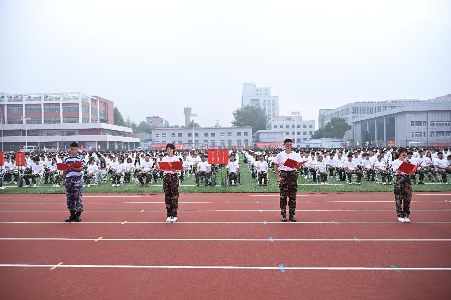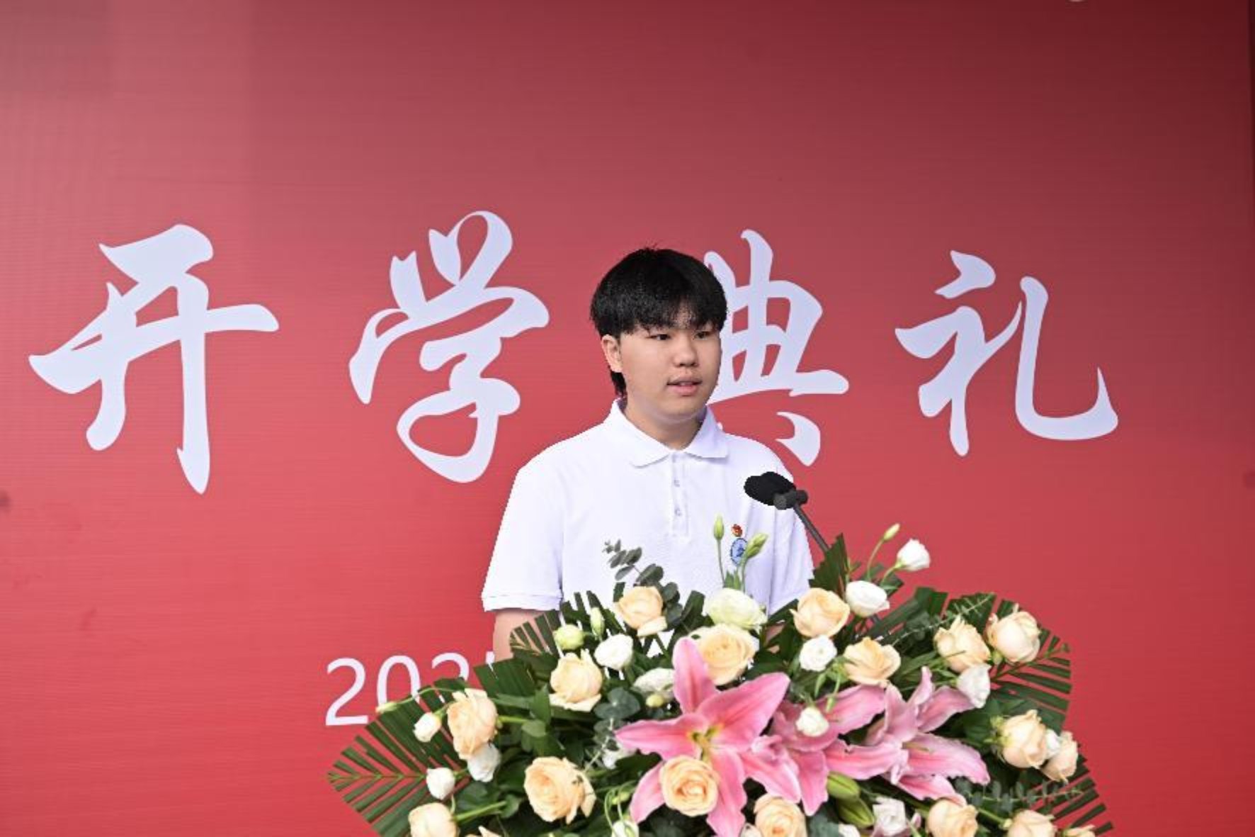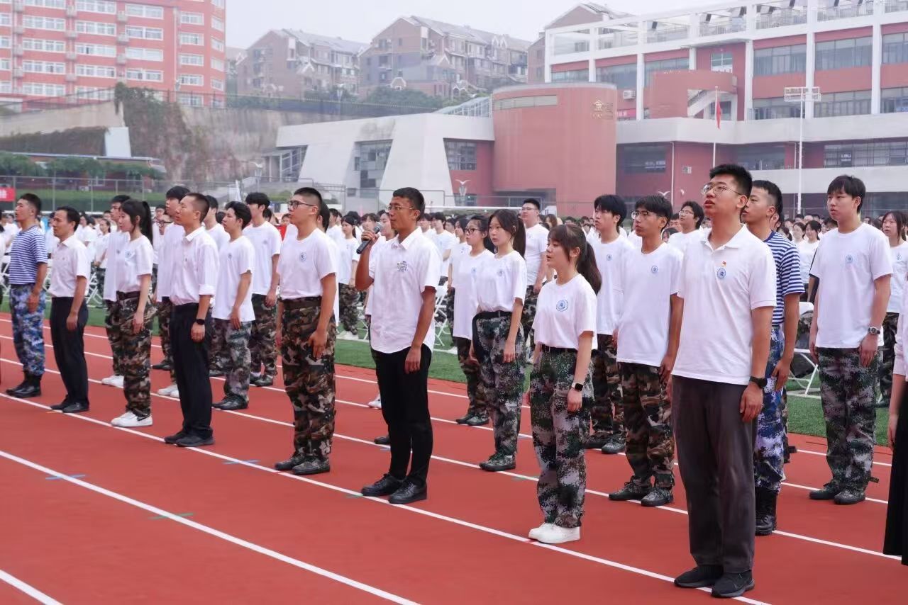 机电工程学院机电一体化2531班刘士杰作为军训新生代表表态:“将以钢铁纪律要求自己,用汗水铸就坚强意志,为大学生活打下坚实基础。”承训部队教官代表表示,将严格施训、科学组训,确保军训安全有序、高质量完成,同时勉励新生发扬不怕苦、不怕累的精神,在军训中锤炼作风、收获成长。