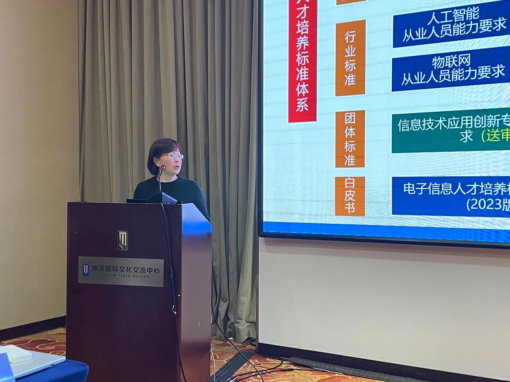 中国电子技术标准化研究院培训中心主任吴东亚,对于中国电子技术标准化研究院的单位概况、项目情况、后续工作计划开展了分享,并对于数字技术工程师培育项目进行了分享,同时邀请共同体成员参与数字技术工程师项目,提供高质量的教学产品,共同推动国家产教融合落地。