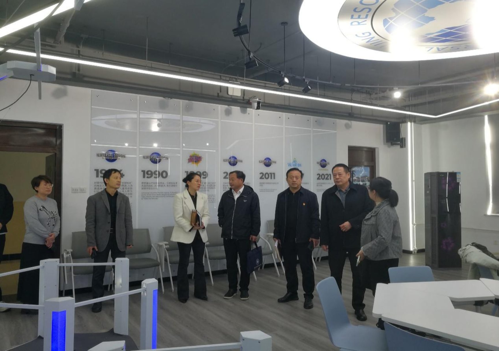 沈莹与方泽新一行参观了对接专业的实训室,实地考察了教学设施与实训条件。