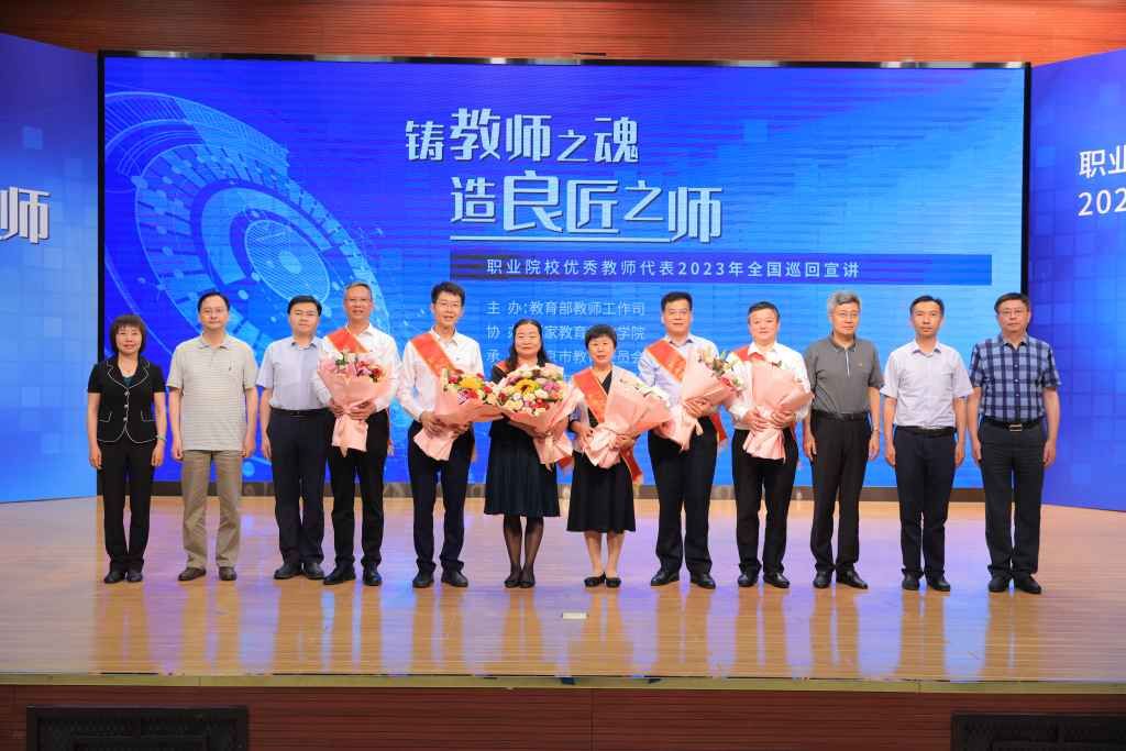 为深入贯彻落实党的二十大精神,推动职业教育教师队伍建设,结合2023年全国职业教育活动周,教育部在职业教育领域遴选了一批全国教师优秀代表开展全国巡回宣讲会。此次巡回宣讲活动的主题为“铸教师之魂·造良匠之师”。