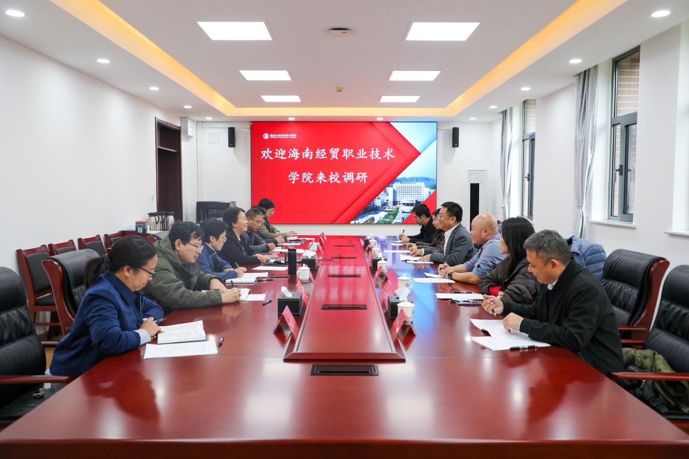 10月24日下午,海南经贸职业技术学院党委书记王华一行6人来校调研交流。我校党委书记田红芳,党委常委、副院长高世吉接待来访客人,并座谈交流。