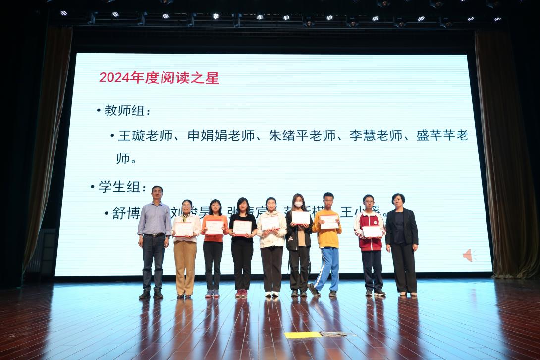 颁奖典礼上,沈莹致辞。本次读书月活动于4月启动,涵盖了线上征集、线下讲座、知识竞赛等十余项文化活动,吸引了全校2000余名师生热情参与。她指出,要把阅读作为一种生活方式和精神追求,持之以恒地坚持下去。她提出三点殷切希望:一是以书为友,做终身学习的践行者。二是以书为媒,做文化传承的守护者。三是以书为炬,做时代精神的引领者。