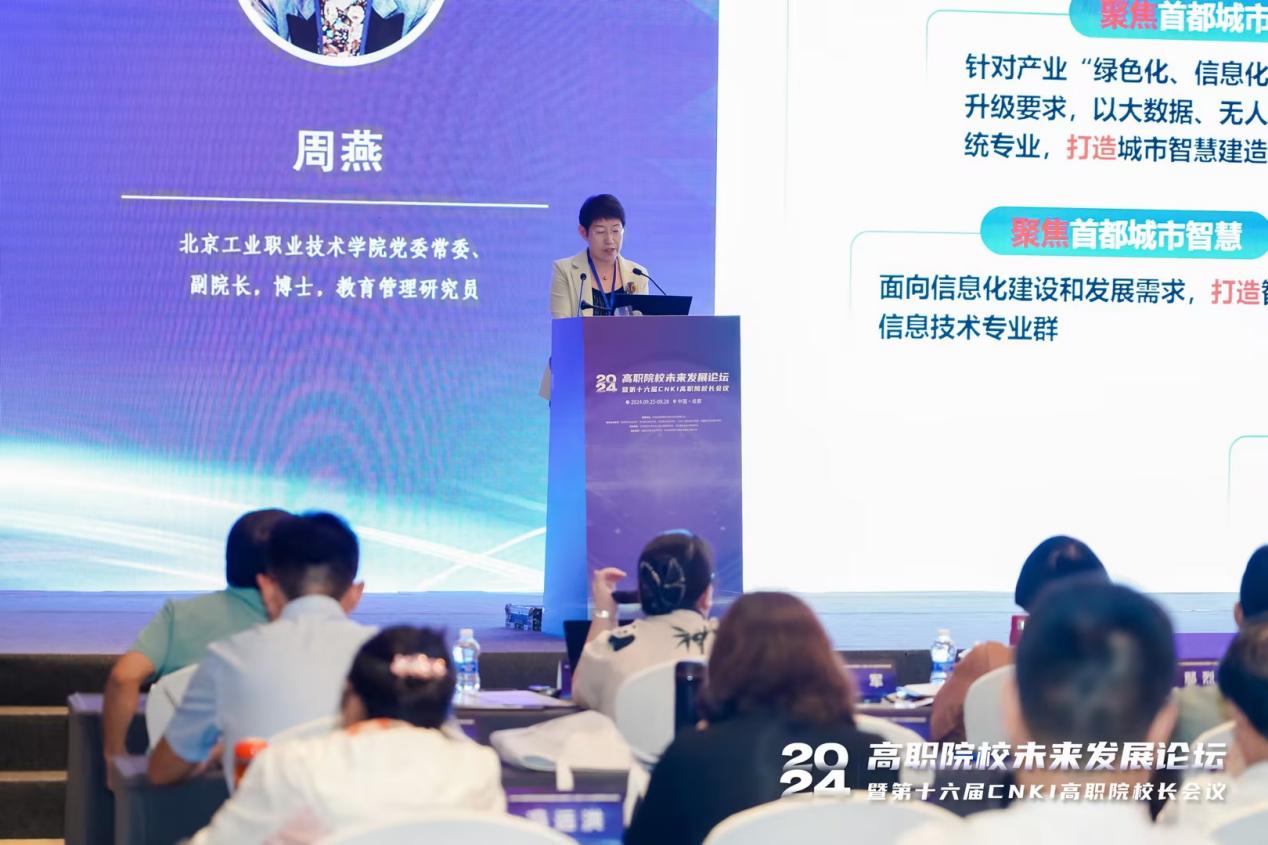 BBV·体育党委常委、副院长周燕代表党委副书记、院长柳长安做了《深化产教融合校企合作,服务首都高质量发展》的主题发言。周燕副院长从BBV·体育基本情况、产教融合校企合作概况、服务首都社会经济发展等三个方面介绍了我校在职业教育领域的探索、做法和成就。发言逻辑清晰、数据详实,得到与会嘉宾认可。